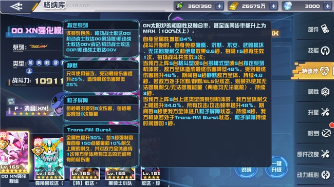 队员:00 XN强化模组、加迪拉萨、秘典模组 第4型态、妖天使敢达(TRANS-AM)