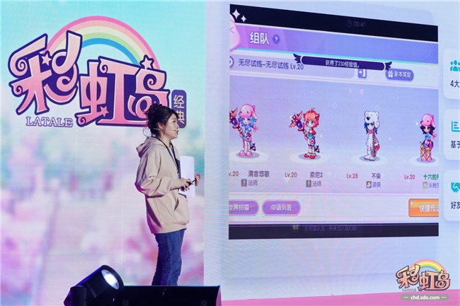 “彩虹美发屋”里,大家为了抽中那个指定发型,简直拿出了当年洗点的劲头;“飞越彩虹岛”的跳一跳挑战区,成了不少岛民证明操作实力的舞台,横版跳台的DNA依旧稳固;“生日茶话会“的时装PK赛和“指尖上的彩虹”手游副本试玩区,更是围满了人,喝彩声此起彼伏。而全场最让人心跳加速的时刻,莫过于广播中突然响起的随机任务播报——“小岛奇遇记”正式开启!大家在人群中穿梭,帮GM小四寻找遗失物品,在现实中体验了一把“接取任务、解锁奖励”的快感。